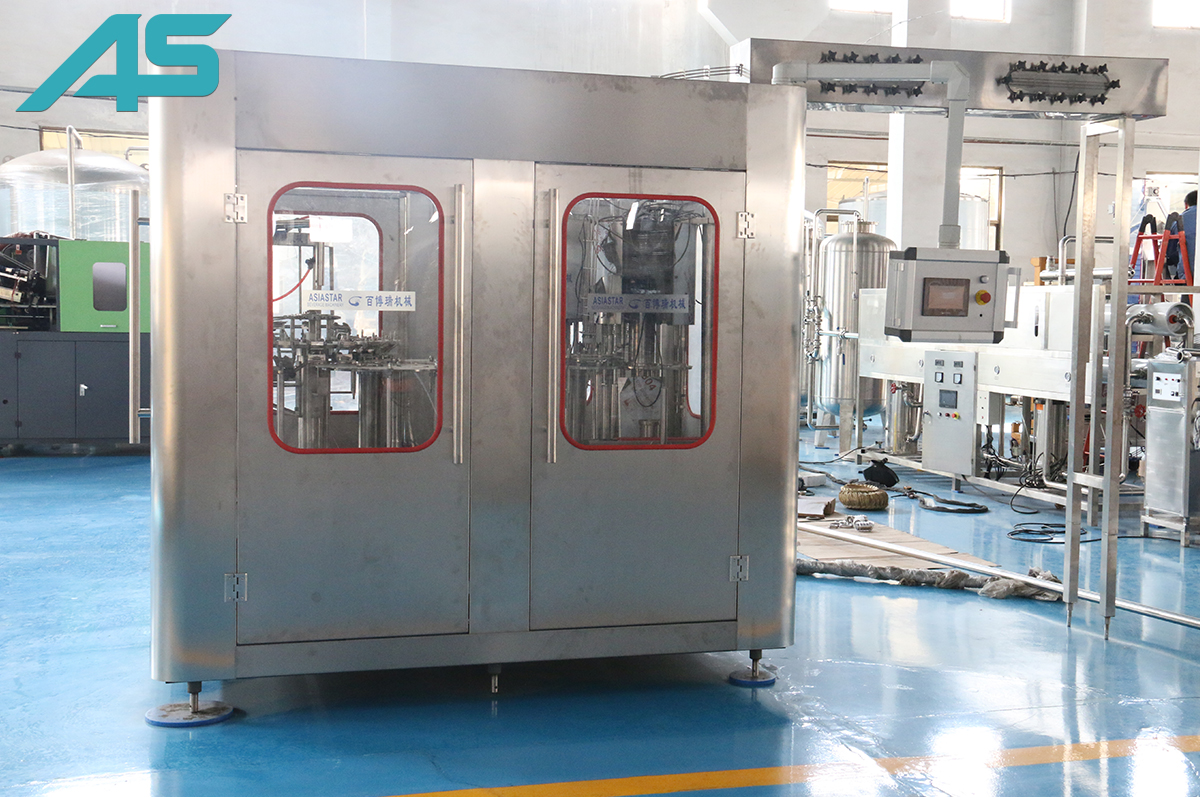 沖瓶、灌裝、旋蓋三合一機組是專門用于高產(chǎn)量純凈水,礦泉水,山泉水,小瓶水的灌裝生產(chǎn),最大生產(chǎn)能力每小時可達到24000瓶,獨特的灌裝閥設(shè)計,可以準確控制灌裝液位。衛(wèi)生級的不銹鋼SUS304管路可以準確保證產(chǎn)品灌裝時的潔凈度,采用觸摸屏控制,操作簡單。